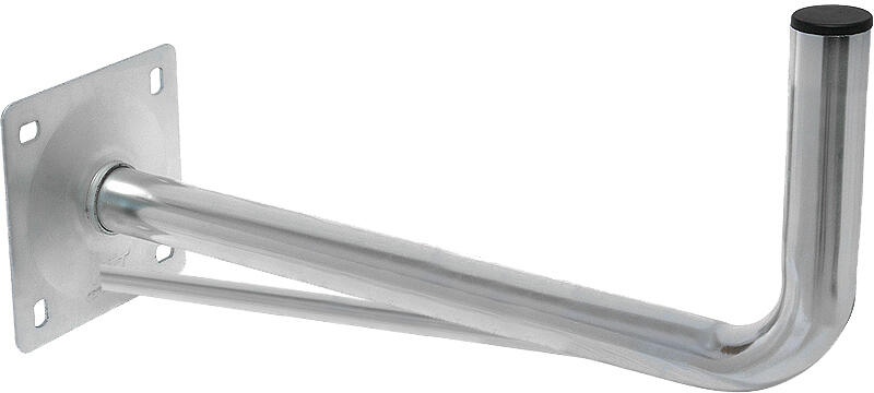 Stâlp de antenă unghiular întărit, cu montare frontală. Acest stâlp este ideal pentru montarea tuturor tipurilor de antene: terestre, satelit, radio și internet. Specificații: - Înălțime: 250mm - Diametrul țevii: 40mm - Lungimea brațului: 800mm - Dimensiunea plăcii: 170x170mm - Material: oțel